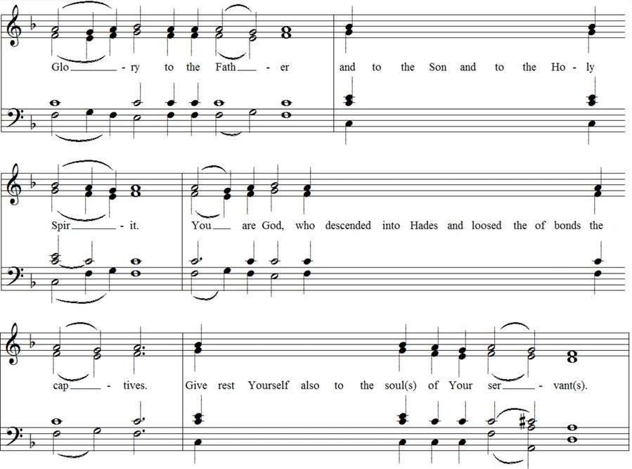 Priest: Glory to the Father, and to the Son, and to the Holy Spi-rit. * Now and ever and to the ages of a-ges. Amen.