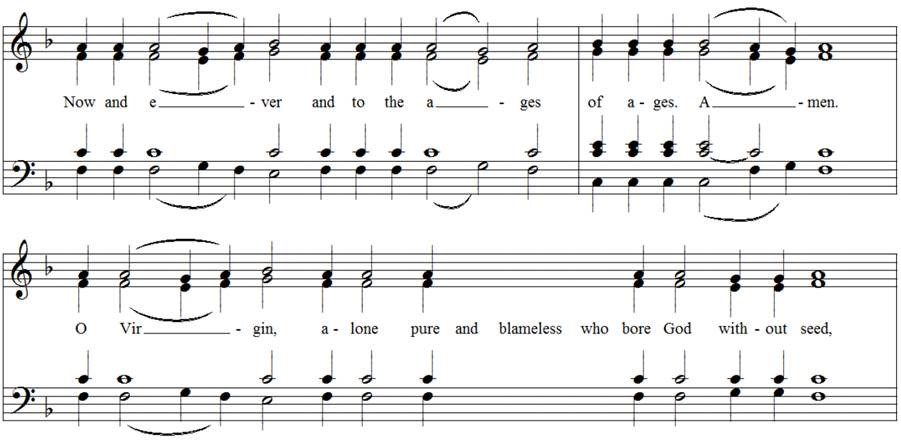 Cantor: Glory to the Father, and to the Son, and to the Holy Spi-rit. * Now and ever and to the ages of a-ges. Amen.