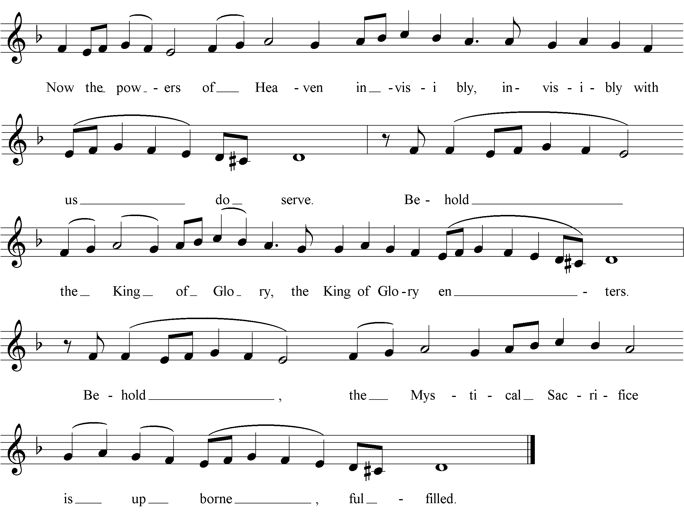 Now the powers of heaven do serve invisibly with us. Behold, the King of glory enters. Behold, the mystical sacrifice is upborne, fulfilled.