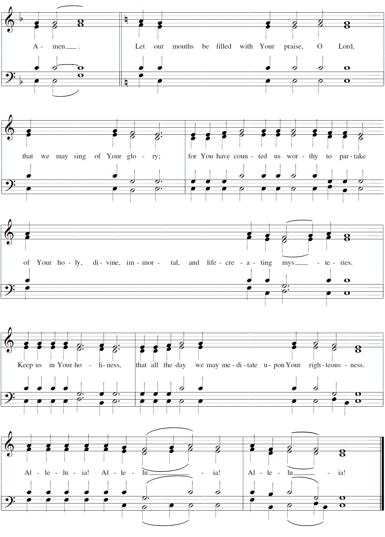 Priest: Glory to the Father, and to the Son, and to the Holy Spi-rit. * Now and ever and to the ages of a-ges. Amen.